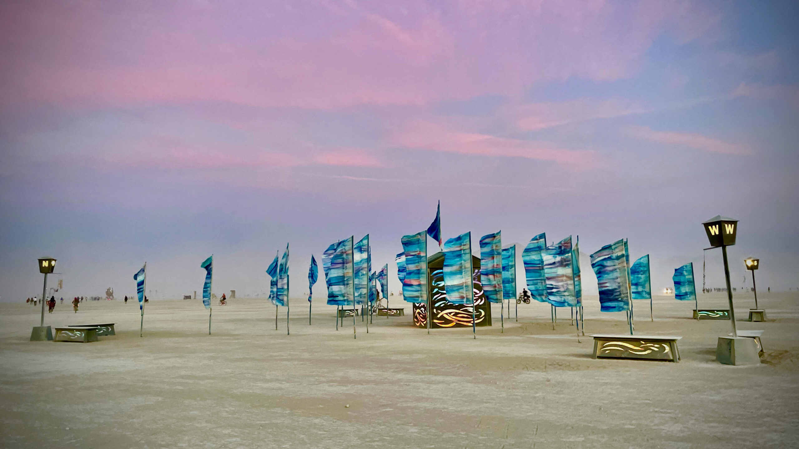 The Wind Phone at Burning Man, unconnected to any earthly line, served as a conduit for grief and connection. Surrounded by hand-dyed banners, participants connected with those they had lost, creating a deeply personal and emotional experience. While it’s impossible to fully quantify the number of visitors due to the 24-hour activity of Burners, thousands passed through the installation. More than 1,500 people picked up the receiver to speak with those they could no longer communicate with in any other way. There were conversations with family, friends, and lovers who had departed this life, and many tears were shed. The surrounding vertical banners were dyed using gravity and melting ice. That was a symbolic reminder of the environmental losses we face globally due to climate change.