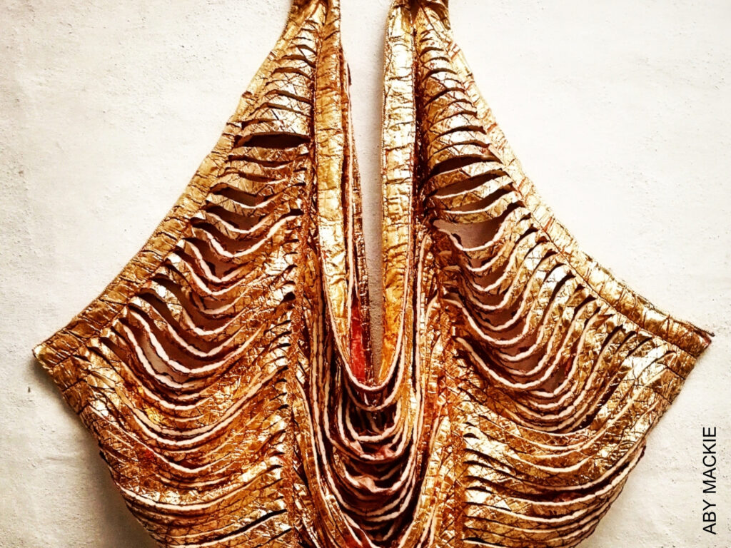 Discover the work of Aby Mackie, one of our feature artists. The transformative possibilities of existing textiles are at the core of her work. Mackie utilizes what she calls a material-led methodology using vintage, antique, repurposed, and secondhand materials.
