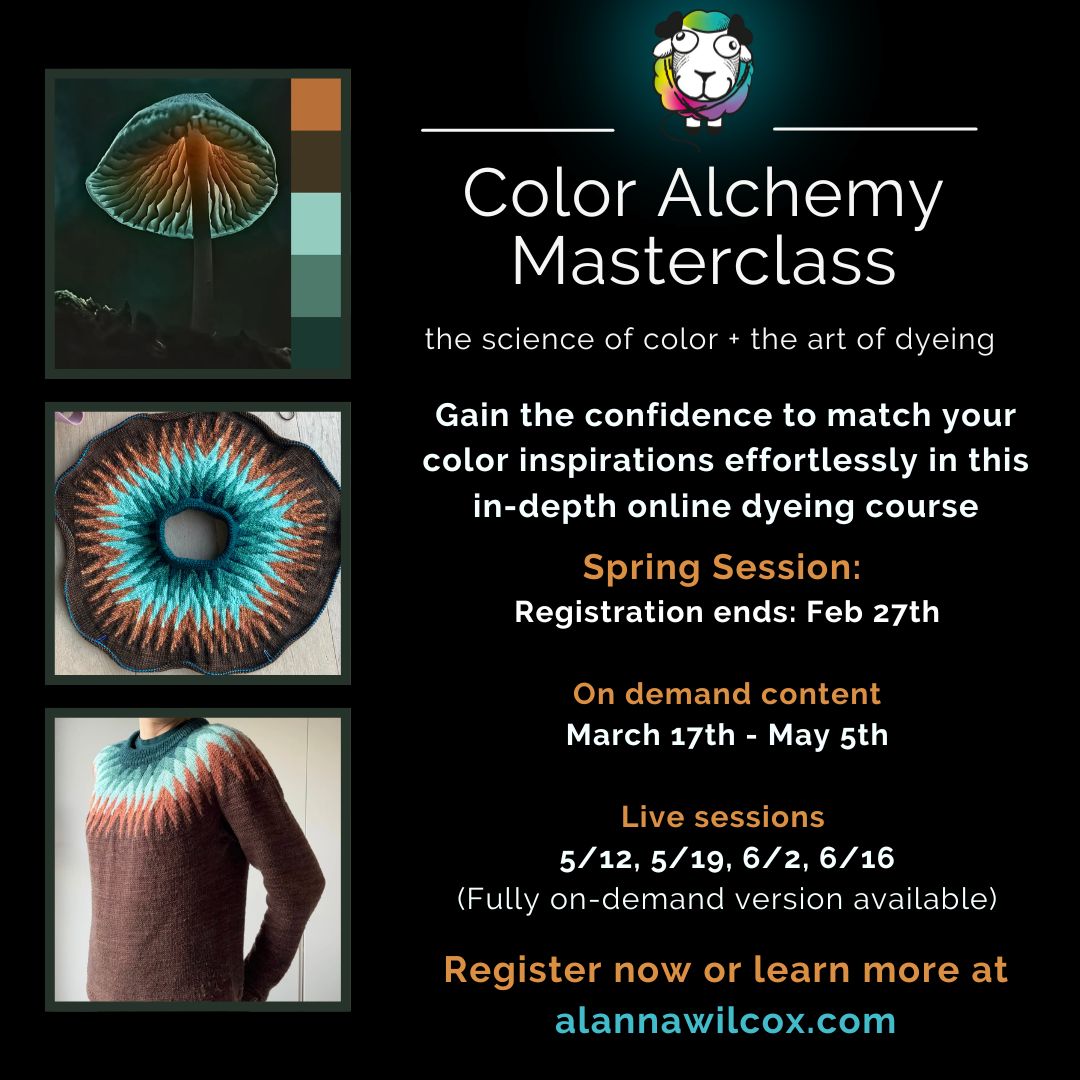 An online dyeing course for fiber artists focused on color theory, primary color mixing, and building repeatable, intentional dye results.