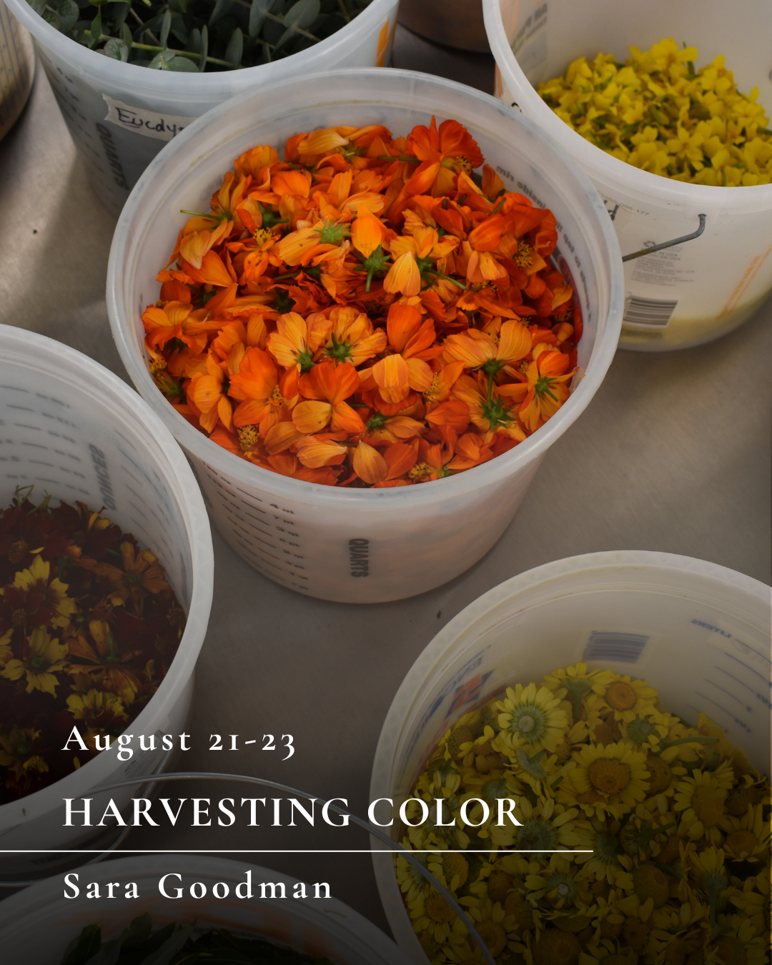 A hands-on natural dye workshop creating a 50-swatch color library across five fibers, using garden-harvested plants, mordants, modifiers, and indigo for rich experimentation.