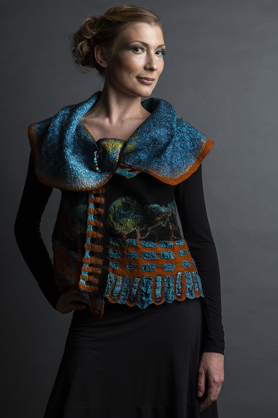 Join Marjolaine in a 5-day in-person immersion class to create her signature 4-Way Vest or a tunic. You will begin the week with smaller projects.